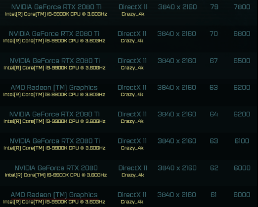 Tillsammans med en Core i9-9900K från Intel kunde detta tidigare okända Radeon-kort kamma hem mellan 5 900 och 6 200 poäng i 4K-upplösning med grafiken inställd på “Crazy”. Detta lägger den på omkring samma prestandanivå som Nvidias Geforce RTX 2080 Ti.