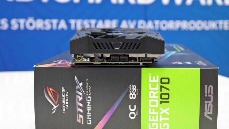 Asus Geforce GTX 1070 Strix är det första partnertillverkade grafikkortet som hittar in i NordicHardwares testlabb baserat på Nvidias nya GTX 1070-grafikkort. Med en nedskalad GP104 GPU under den mattsvarta kylaren är grafikkortet en rejäl krabat som mäter drygt 30 centimeter från I/O-panel till kylarens bakkant.