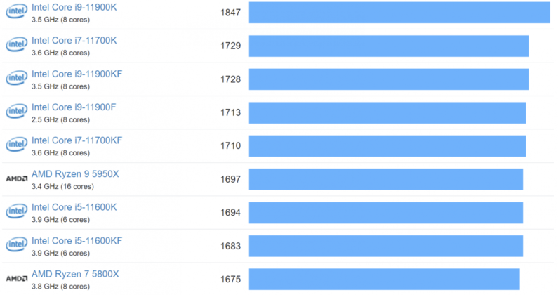 Intel-processorn lyckades kamma hem en enkärnig poäng på mellan 1 662 och 1 700. I den del av testsviten som pressar samtliga processorkärnor landade processorn på 6 005 poäng. Detta innebär en enkärnig slutpoäng som i bästa fall klår hela AMD:s Ryzen 5000-serie av processorer. Dock med en marginal på tre poäng jämfört med Ryzen 9 5950X. Det innebär även en ökning på omkring 300 poäng jämfört med processorns föregångare Core i7-1185H7 och 1165G7.