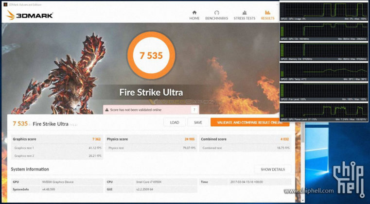 En asiatisk överklockare har satt tänderna i Founder’s Edition-utgåvan av GTX 1080 Ti och pressat klockfrekvensen på GPU till hela 2 063 megahertz. Upp från standardfrekvensen på 1 480 megahertz. Även minnet har överklockats något från 11 000 MHz till 11 404 MHz och detta utan att temperaturen översteg 63 grader celsius.