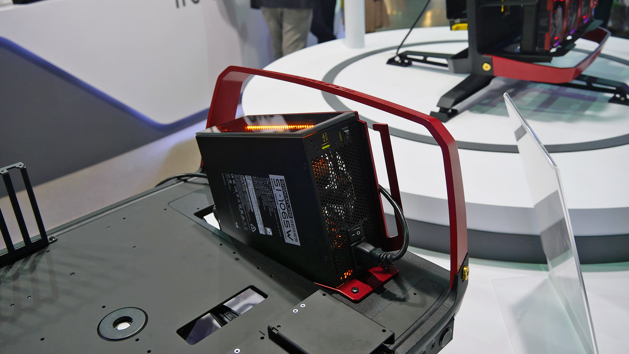 I övrigt påmminer chassit egentligen mer om en öppen testbänk än ett regelrätt chassi; det finns inga sidopaneler som blockerar ljud, håller borta damm eller döljer komponenterna. Snarare rör det sig helt och hållet om ett uppvisningschassi, antingen för komponenttillverkare eller moddare som vill visa upp sina senaste skapelser, eller kanske för konsumenter som är villiga att betala extra för att sticka ut lite mer än alla andra när de är på LAN. Det finns ett takmonterat nätaggregat på 1 200 watt som ingår vid köpet – du kan inte montera ditt eget.