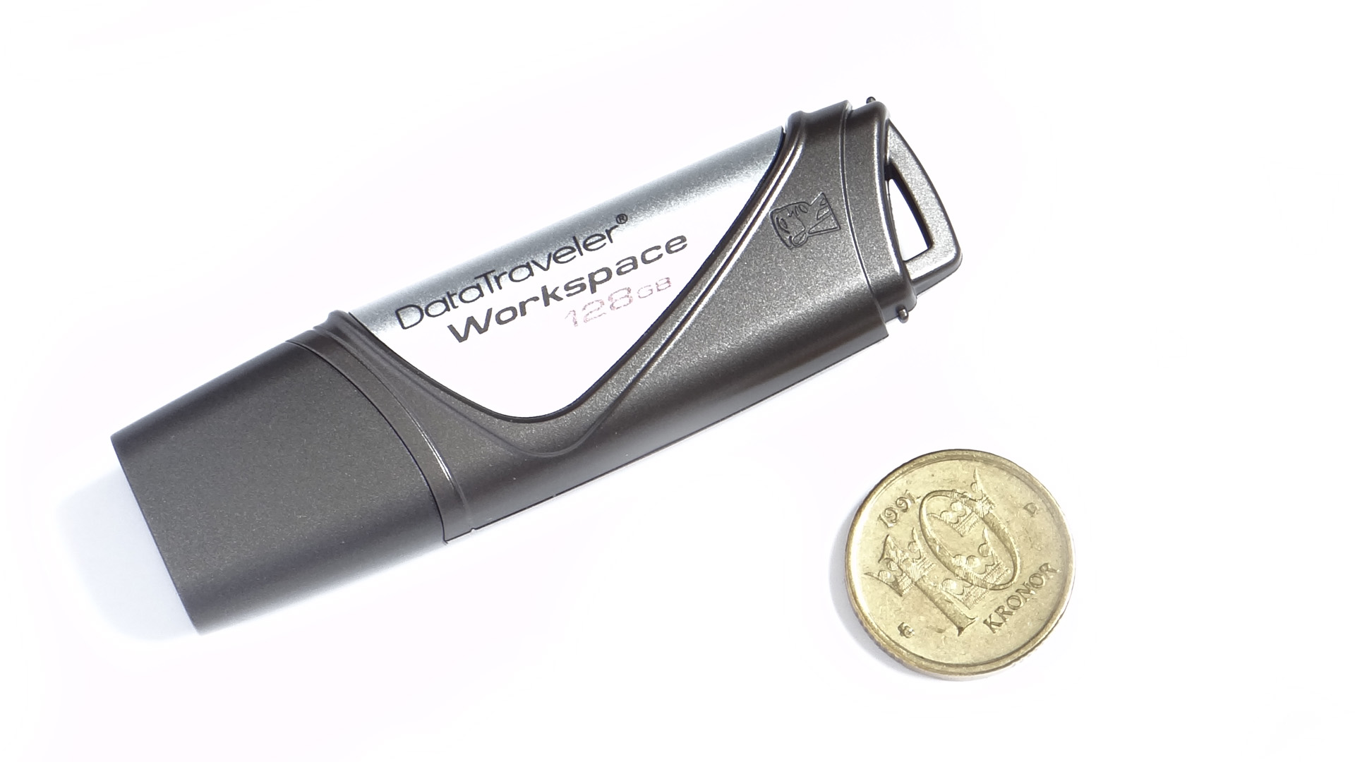 Den andra USB-enheten vi tittar på idag är något äldre och det är Kingston Datatraveler Workspace 128GB. Denna släpptes redan 2013 i samband med att Microsoft släppte “Windows to go” som en funktion i “Windows 8 Enterprise. Funktionen bygger på att du kan skapa en Windows-installation på en extern HDD/USB/SSD som är en “kopia” av din arbetsstation. Du kan sedan ta installationen till vilken dator som helst och boota den och direkt komma igång med din egen installation av Windows inklusive dokument och program.