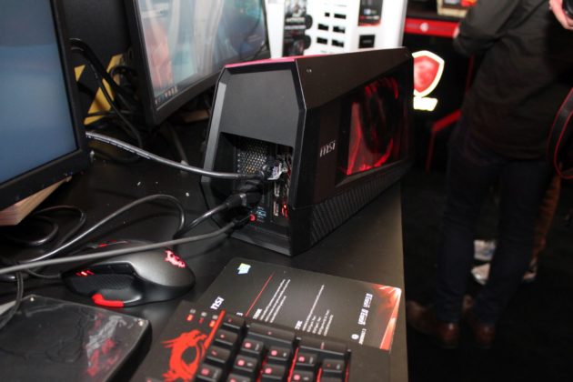 MSI:s lösning kallas GUS, och kommer i ett förhållandevis kompakt och slimmat format, åtminstone jämfört med konkurrenter som Razer Core eller Powercolor Devil Box. Inuti det svartröda kabinettet kan du montera valfritt grafikkort från AMD eller Nvidia. Den enda möjliga begränsningen är nätaggregatet på 500 watt, vilket ska räcka till alla nuvarande entusiastgrafikkort på marknaden. På plats på CES 2017 får vi se GUS användas tillsammans med ett Geforce GTX 1080 och en Intels Skull Canyon-NUC NUC6i7KYK.