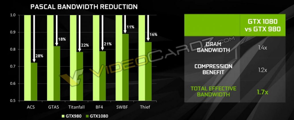 Detaljerat är även GDDR5X-minnet i den nya toppmodellen, som tillåter högre minnesbandbredd på samma bussbredd som GDDR5, samt högre klockfrekvenser. I just Geforce GTX 1080 ligger den effektiva minnesfrekvensen på 10 000 megahertz, och minnet körs över en 256-bits minnesbuss.