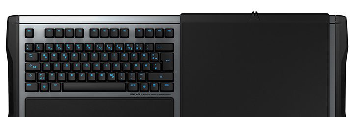 Roccats lösning, Sova, kombinerar en rad olika funktioner i ett. Roccat har utgått ifrån ett stycke aluminium, i vilket de installerat ett tangentbord med mekaniska, bakgrundsbelysta brytare. Ovanpå utrymmet till höger om tangenterna, fortfarande i samma stycke aluminium, finns en musmatta, och under tangenterna finns ett rejält handlovsstöd.