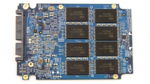 Minneskretsarna har ett eget artikelnummer som är: FLCGM2T061U111000. Utan ett datablad på dessa minneskretsar så kan vi inte säga med säkerhet vad det är för minnen. Vi vet att det är minnen som är tillverkade på 2xnm och att de följer standarden ONF v2.x, dvs synkrona minnen. Troligtvis rör det sig om synkrona minnen tillverkade på 25nm från Intel eller Micron (IMFT). Ungefär samma minnen som sitter i Xtreem S3 och nästan alla andra Sandforce-baserade enheter idag. Minneskretsarna är 16 stycken till antalet vilket gör att varje minneskrets huserar en NAND-enhet och därmed en kapacitet på 8 gigabyte.