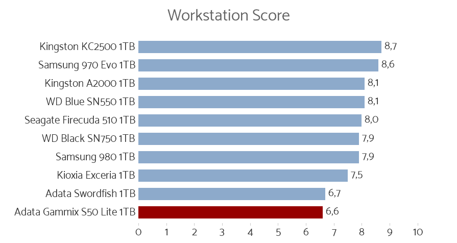 Vi gillar att Adata provar sig fram med nya kontrollerkretsar och minneskretsar. Det gör dock att företagets produktportfölj blir en aning spretig. Det finns många bra enheter (SX8200) och en del mindre bra enheter och det kan ibland vara svårt att hålla reda på vad som är vad. Det gör också att vi konsumenter måste navigera runt diverse prefix och suffix när vi får namn som XPG Gammix S50 Lite.