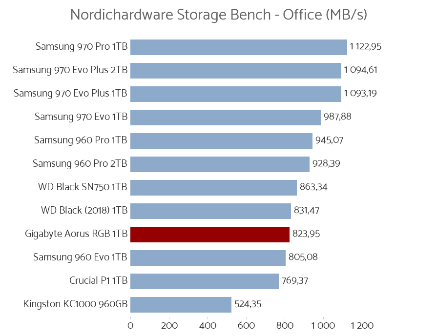 Återigen är det skrivprestanda som är bäst, även om Aorus RGB levererar bra prestanda genom alla tester. Här är den snabbare än exempelvis WD Black SN750.