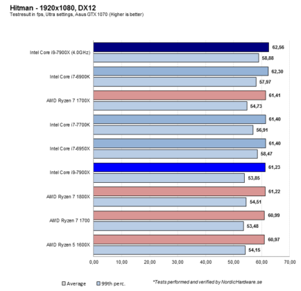 Marginalerna är förhållandevis små i såväl DX11 som DX12, men Core i9-7900X ligger bra till i båda fallen.