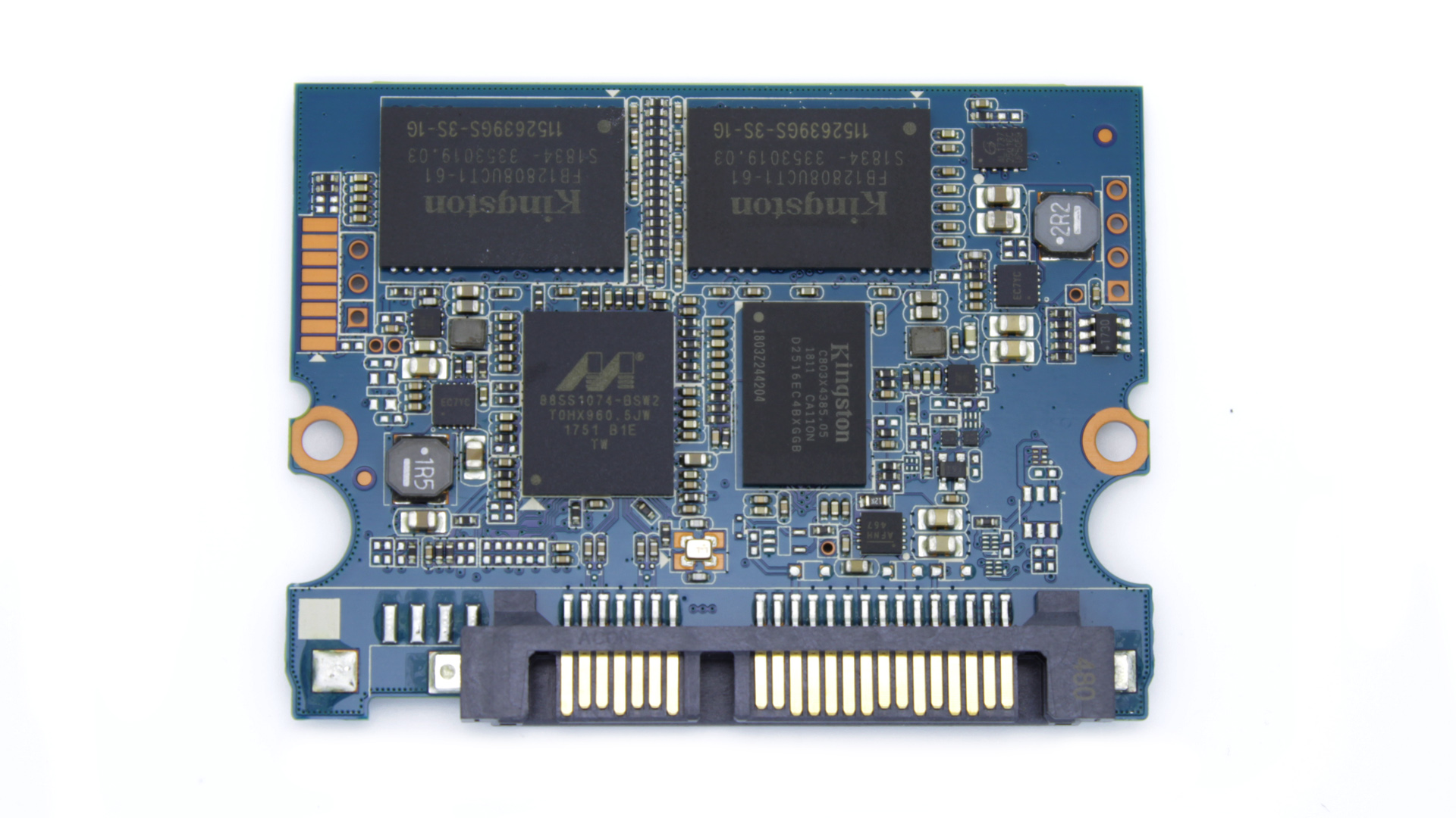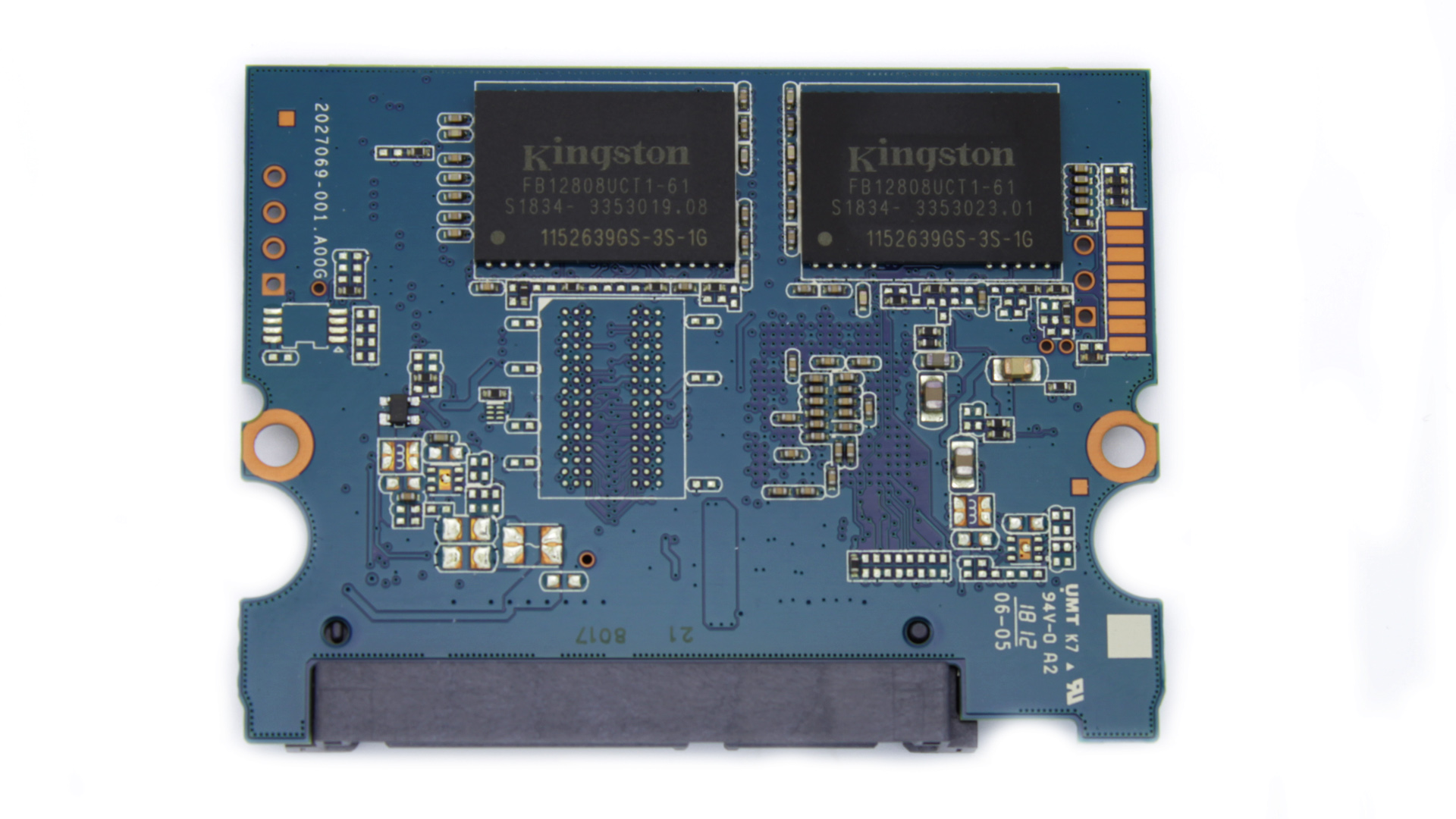 Rent visuellt påminner UV500 mycket om A400. Båda har exakt samma chassi och från utsidan kan vi inte se någon skillnad på dem. På insidan använder båda samma storlek på kretskortet, men där slutar också likheterna. UV500 har en mer avancerad design med en större kontroller. Förutom kontrollern från Marvell, hittar vi fem chip med Kingstons egna artikelnummer. Det gör dem tyvärr svåra att identifiera men fyra av dem är 64L 3D-TLC NAND. Vi vet tyvärr inte vilken tillverkare men det handlar troligtvis om Micron eller Toshiba.