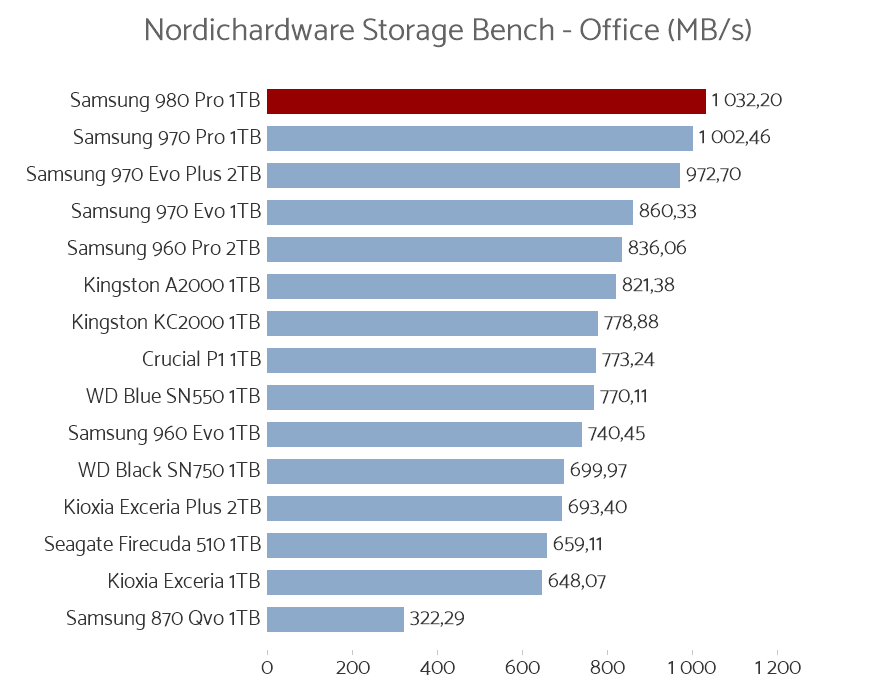 Det är inget snack om att Samsung 980 Pro är den snabbaste SSD-enheten på marknaden i nuläget. Det är egentligen bara i SQL-testet som vi ser en liten dipp. I alla andra tester är är 980 Pro den snabbaste enheten vi testat. Särskilt imponerande är filkopieringstesterna, där övriga enheter inte har skuggan av en chans.