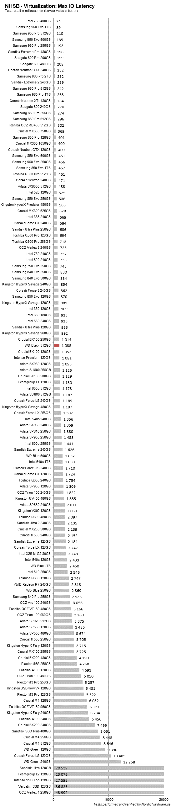 Trots en ganska dåligt resultat så presterar WD Black fina resultat på varje individuell IO. Det ser ut som att WD Black jobbar med sekventiell än parallellt och sätter allting på kö snarare än att försöka hantera det på en gång.