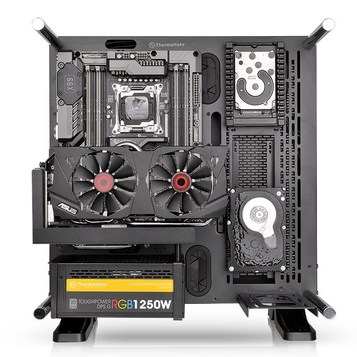 Thermaltake menar att chassit använder sig av en modulär design där användaren själv kan välja hur det ska byggas ihop. Det finns även stöd slutna vattenkylningslösningar, upp till 420 millimeters radiatorer och flera lagringsenheter i 2,5 eller 3,5″ format.