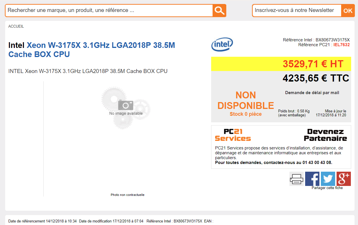 Trots en fortsatt avsaknad av officiellt lanseringsdatum har nu Intels kommande 28-kärniga processor Xeon W-3175X för ultra-entusiaster och företag listats hos flera europeiska återförsäljare. Prissättningen är dock fortsatt förvirrande.